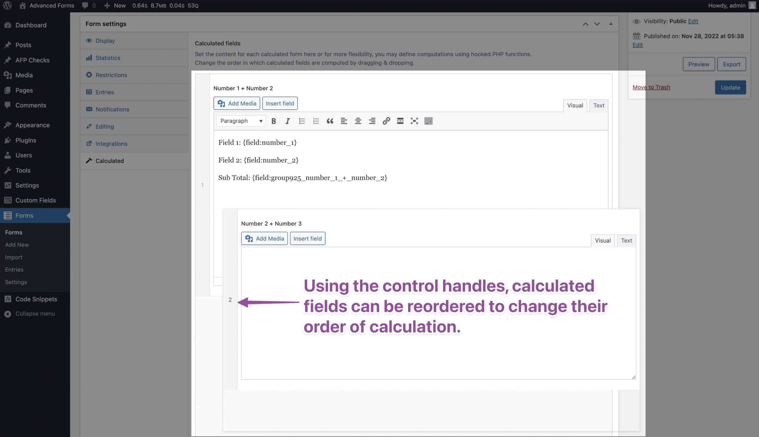 Version 1.9.3 is now live for both Advanced Forms and Advanced Forms Pro. The main focus for this release is to improve calculated fields in ACF forms to make them more flexible but there are a number of other small fixes including a hot-fix for ACF’s core validation which prevent validation problems when using more than one form on the same page. Details on these enhancements are below.