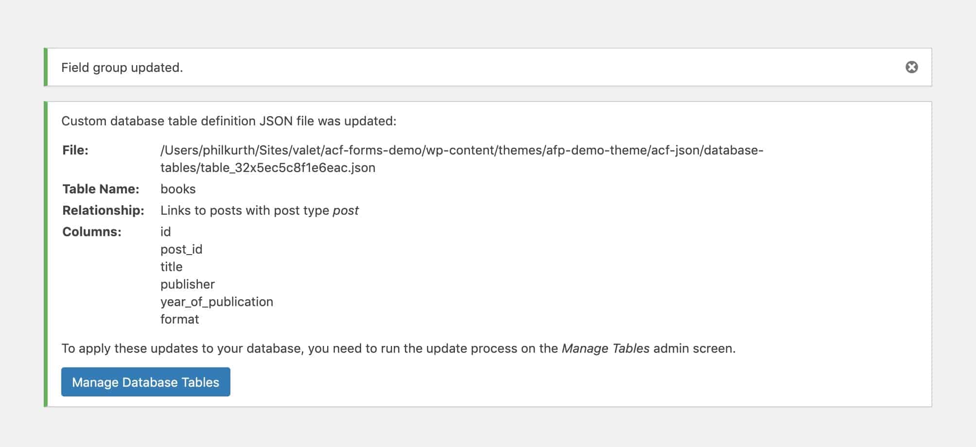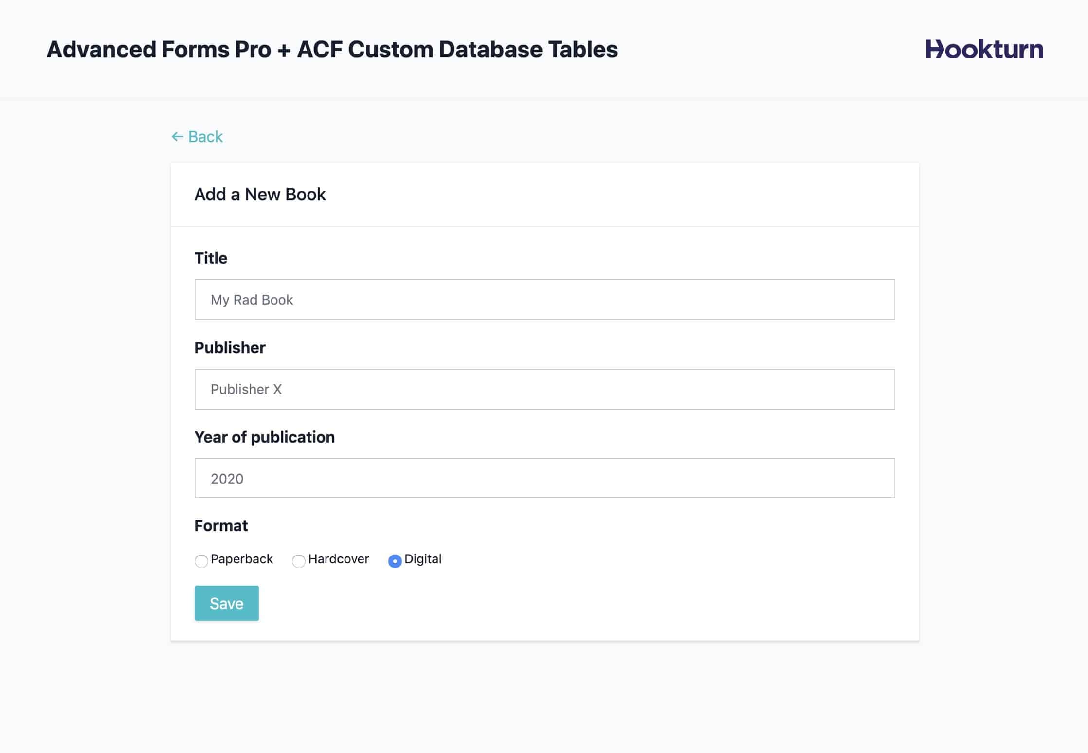 In this post, we’re going to walk through exactly how to approach this. By the end, we’ll have a form that, on submission, creates new posts within a custom post type called book and all ACF field values on that form will be stored in a custom table called wp_books. We’re going to use a no-code approach so aside from any UI development work, everything we step through will be achievable from the WordPress admin.